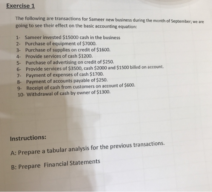 Solved Exercise 1 The Following Are Transactions For Sameer Chegg Com